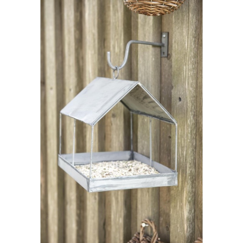 mangeoire pour oiseaux forme de maison metal gris vintage