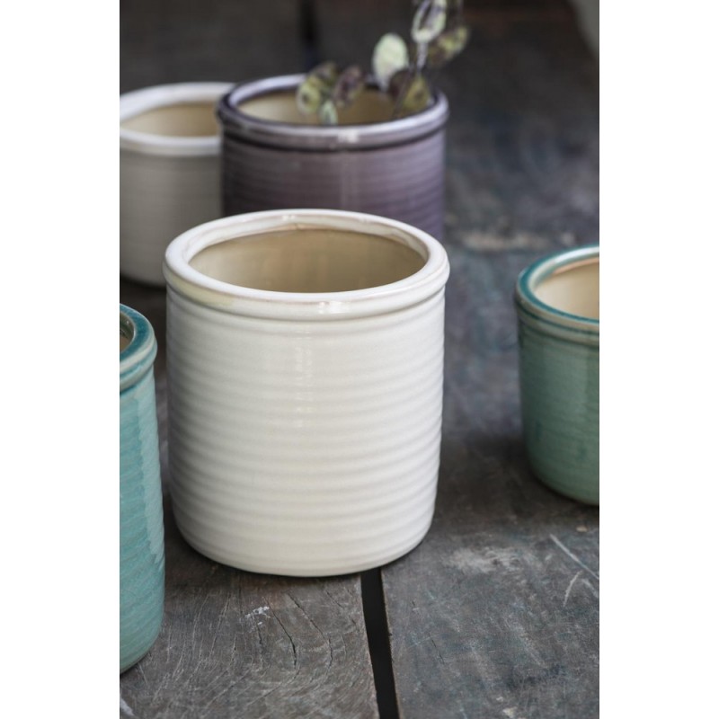 cache pot blanc emaille ceramique rainure ib laursen