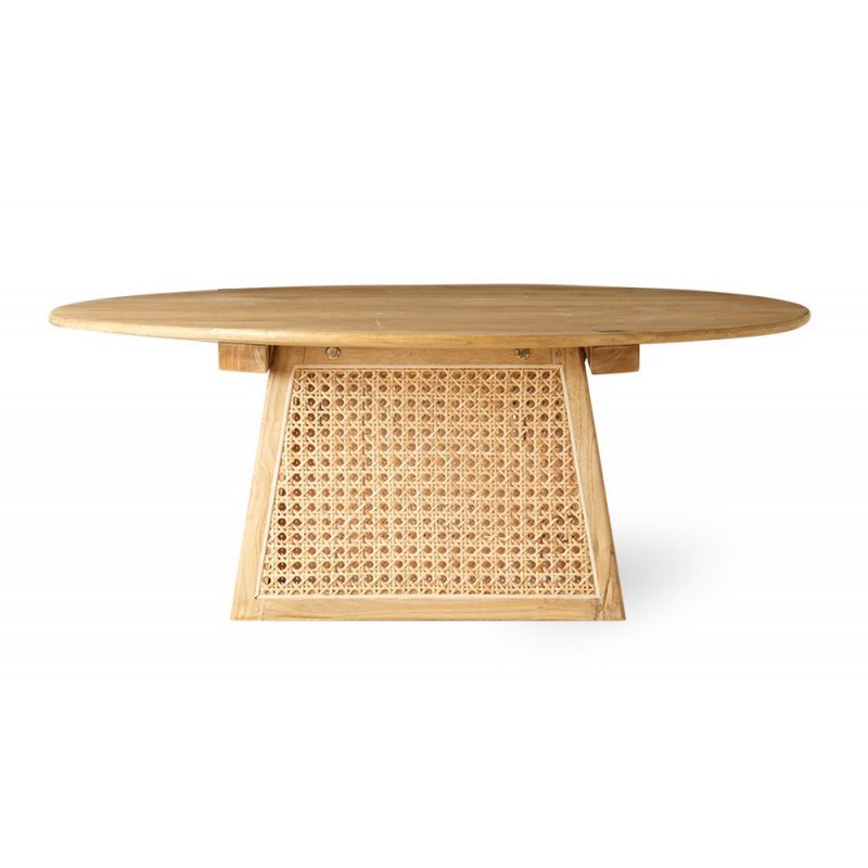 hk living table basse ronde bois clair cannage rotin d 80 cm