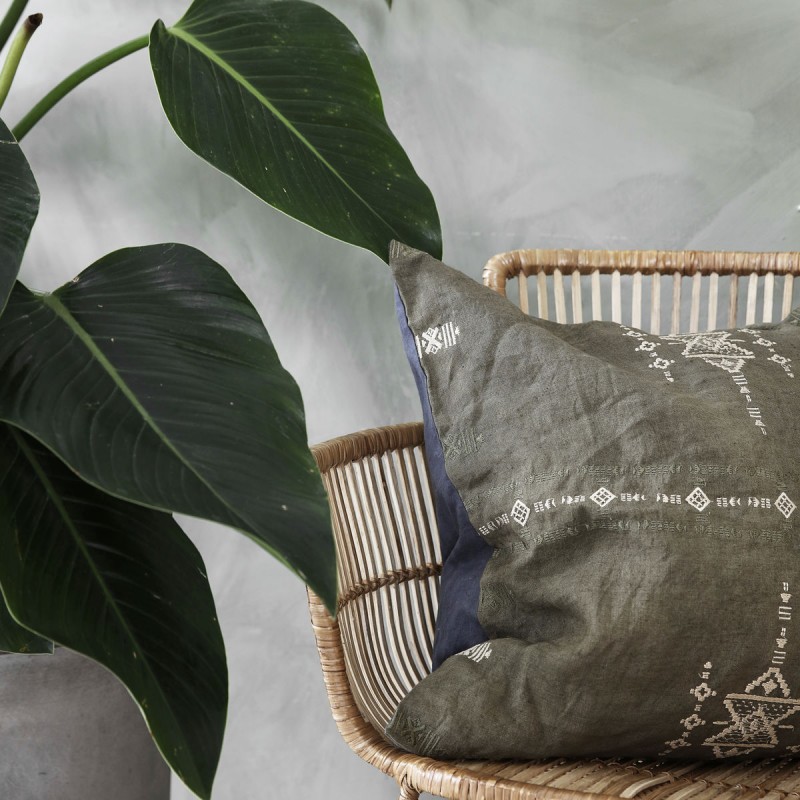 house doctor inka housse de coussin carre lin vert kaki 50 x 50 cm