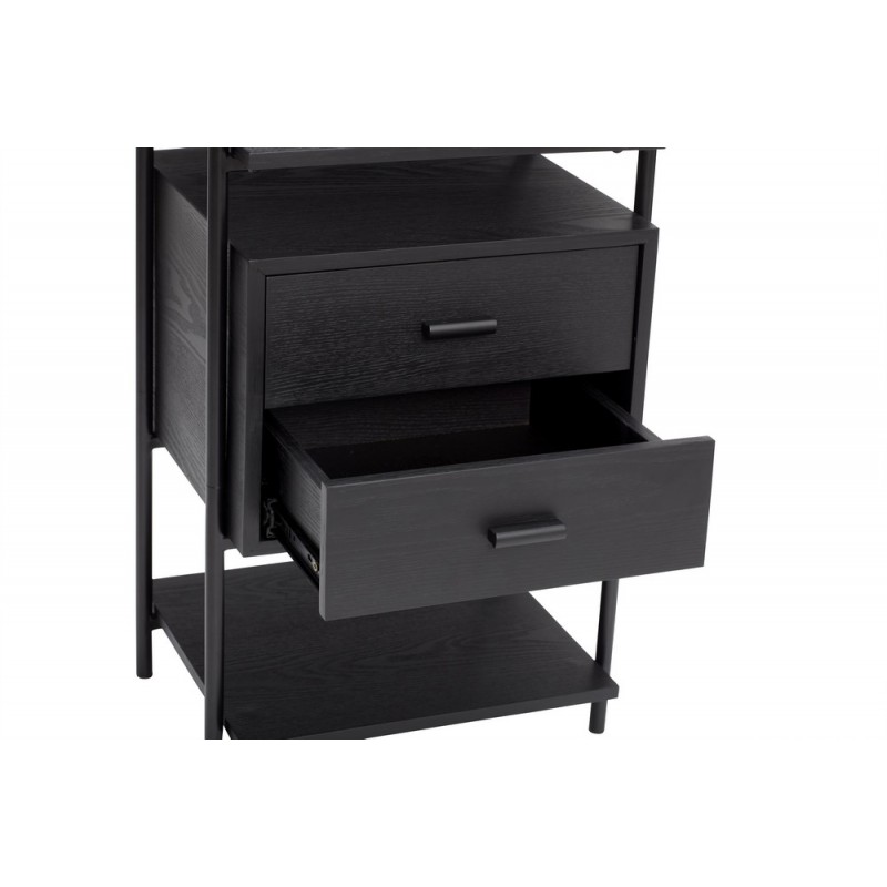 hubsch table de chevet design noire bois metal 2 tiroirs