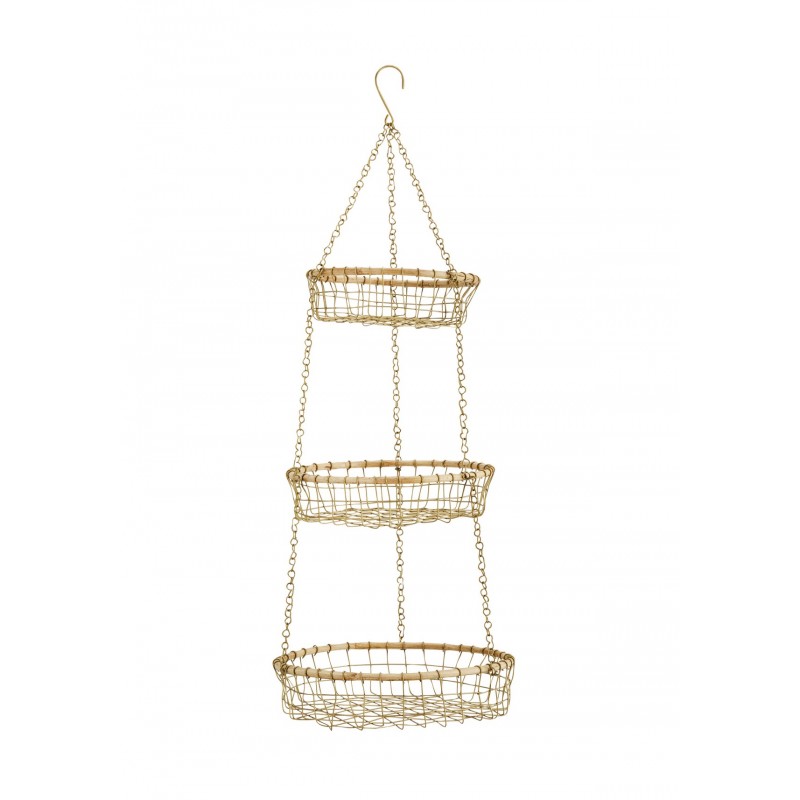 madam stoltz rangement 3 paniers suspendus fil de fer dore