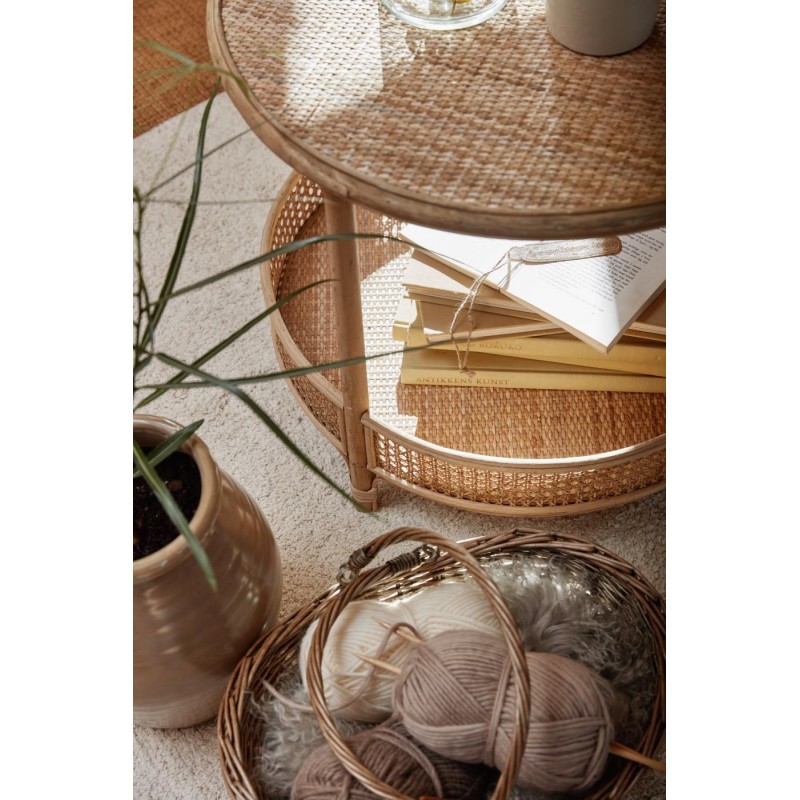 table basse ronde 2 niveaux rotin tresse style retro ib laursen