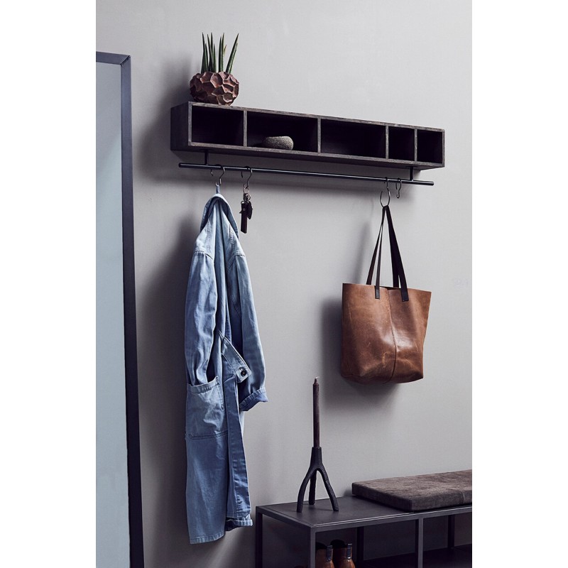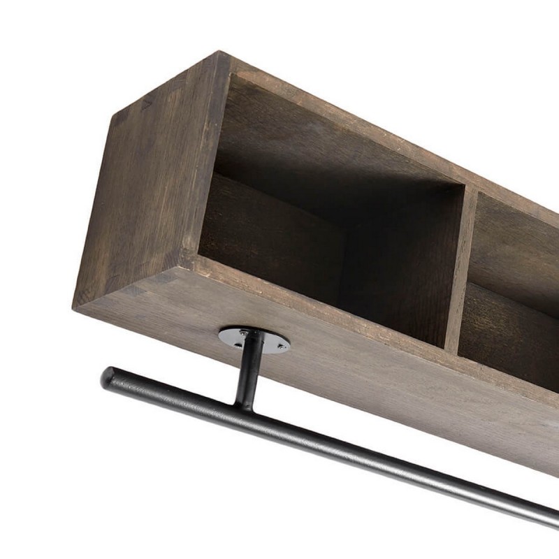 longue etagere bois fonce avec barre metal pour crochets muubs chelsea