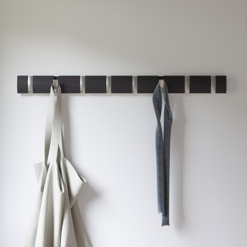 umbra flip 8 portemanteau barre bois fonce flotte 8 pateres metal