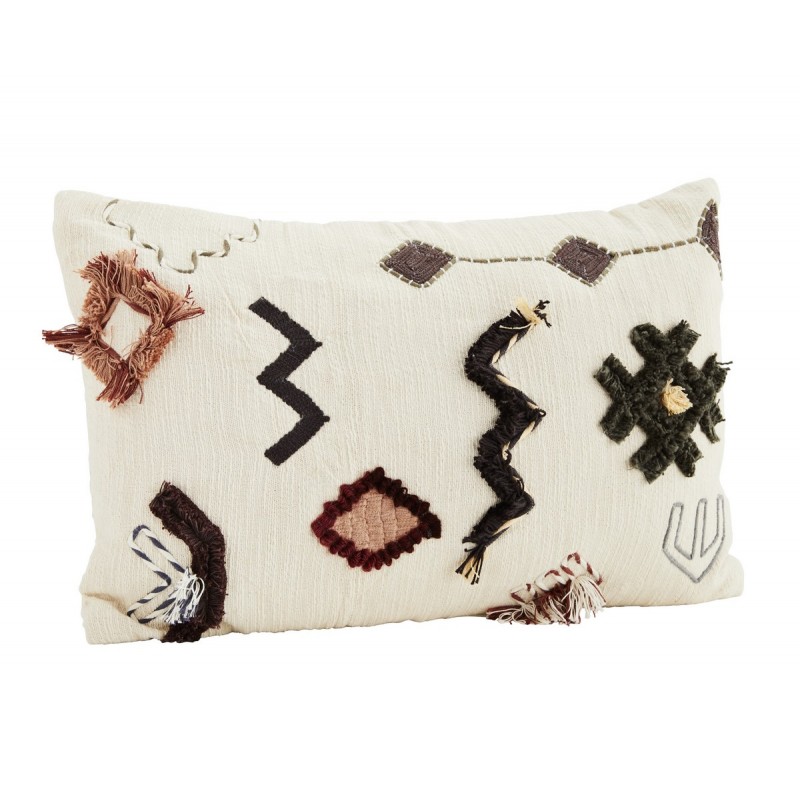madam stoltz coussin brode ethnique rectangulaire coton blanc
