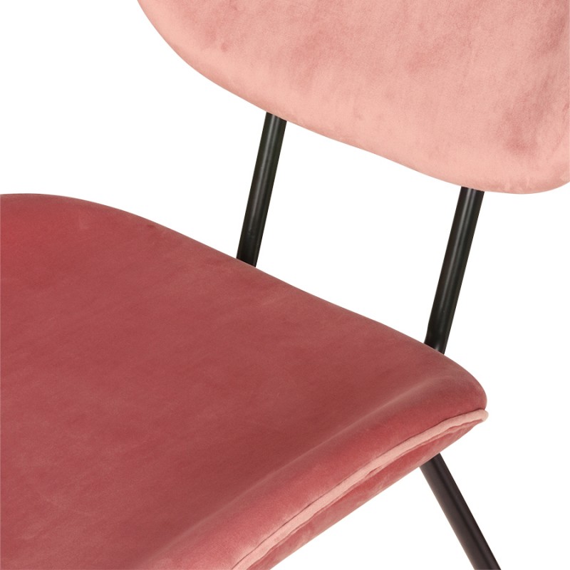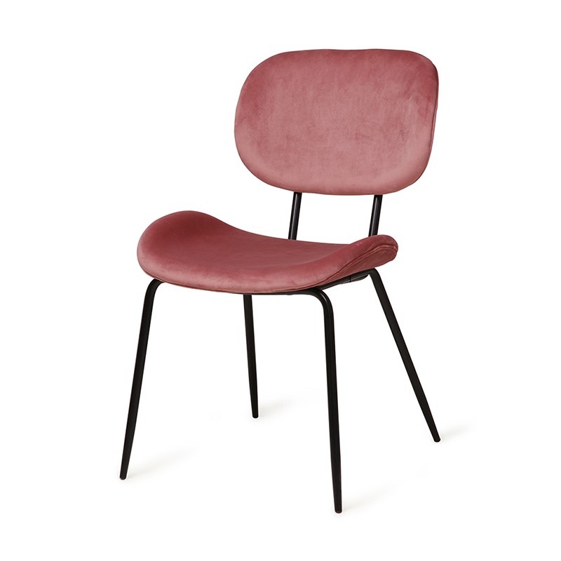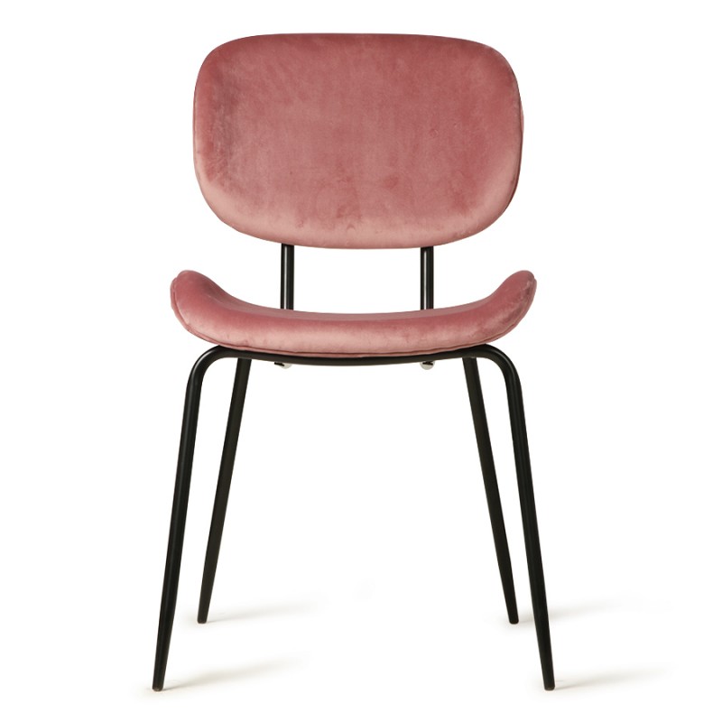 hk living chaise rembourree confortable velours vieux rose metal noir