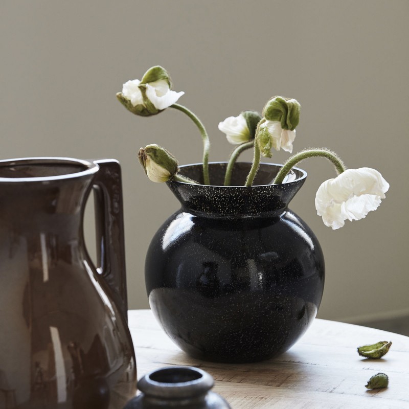 house doctor chenna vase rond verre noir