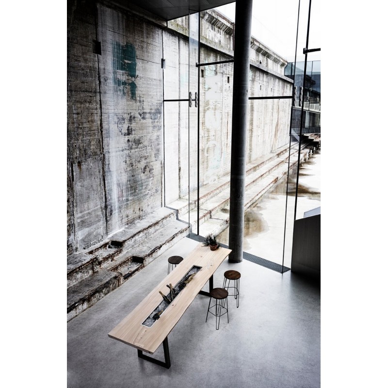 muubs tabouret de bar rond bois massif fonce metal move 65