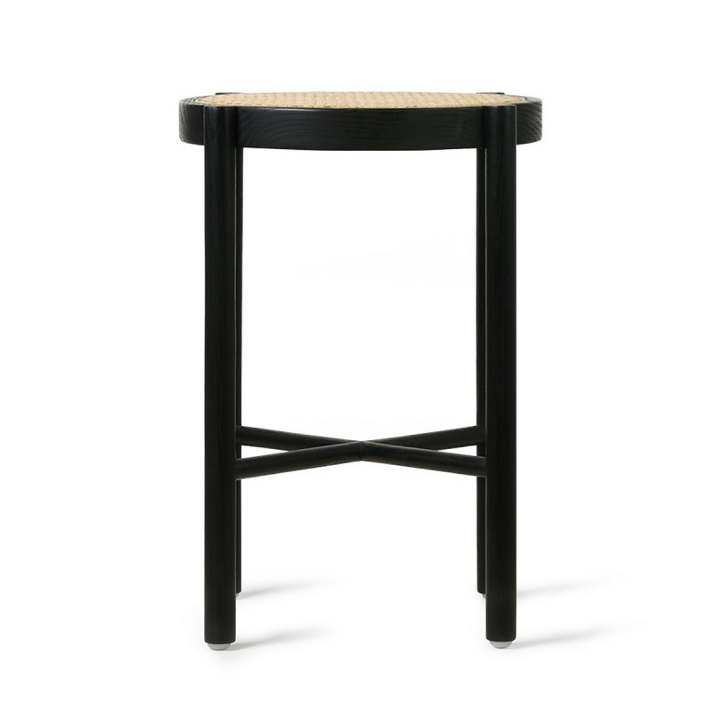 hk living tabouret rond style retro vintage noir bois cannage rotin