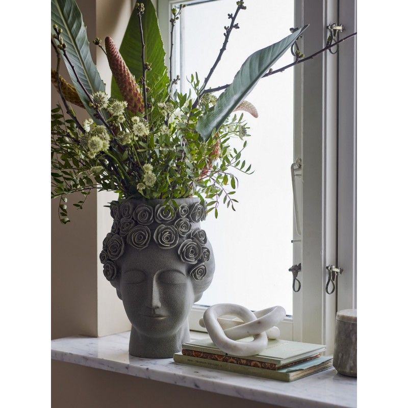 vase tete de femme fleuri gres gris bloomingville