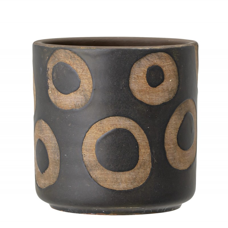 bloomingville cache pot design noir motif cercles terre cuite