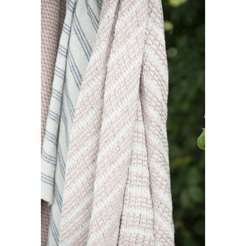 plaid coton rayures blanc ecru mauve franges ib laursen