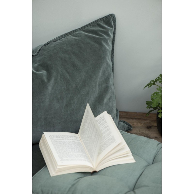 ib laursen housse coussin carree velours vert kaki delave 50 x 50 cm