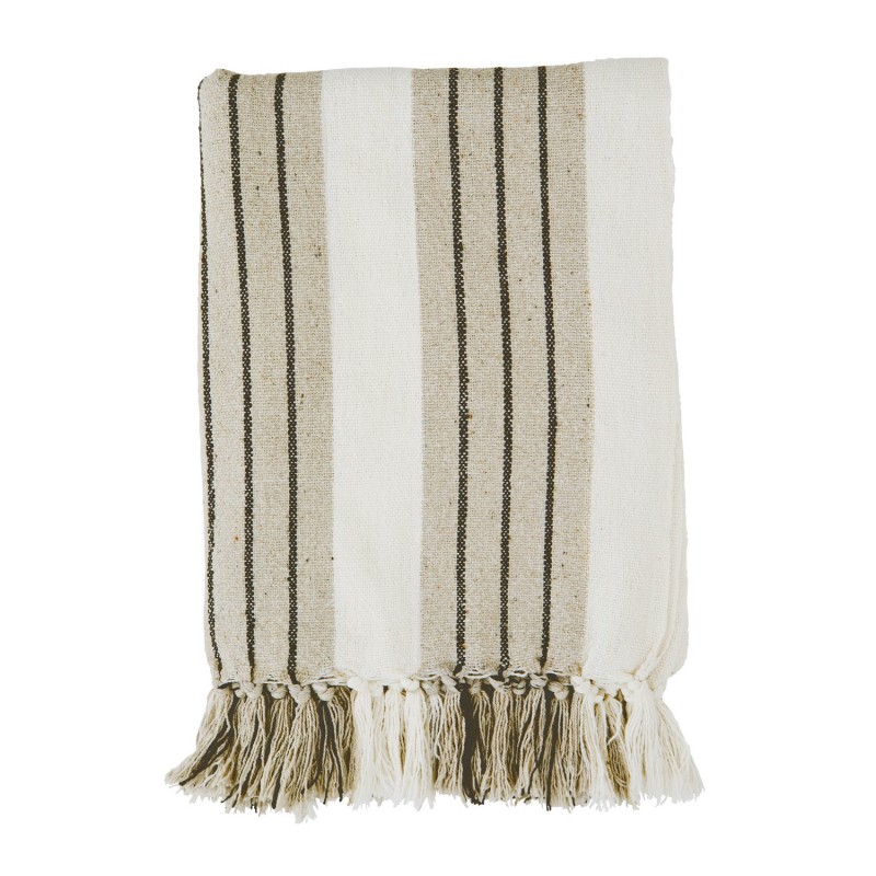 plaid coton recycle beige rayure franges madam stoltz