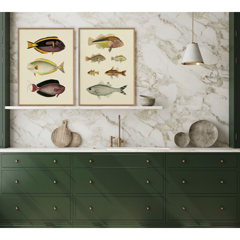 Intégrez la vie sauvage, la simplicité et un brin d'humour à votre décoration intérieure avec ces gravures de poissons The Dybdahl. Pourquoi pas penser à la chambre des enfants, elles apportent non seulement de la couleur, mais aussi un élément éducatif.