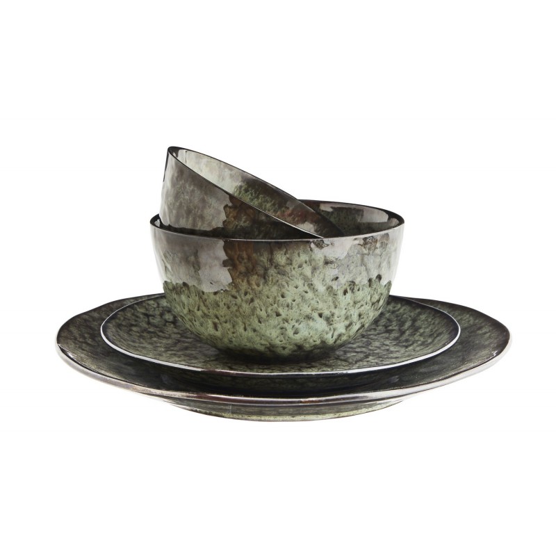 Son grès irrégulier aux nuances de brun et vert clair apporte une touche de charme et de rusticité, idéale pour une table à l'esprit campagne et authentique.