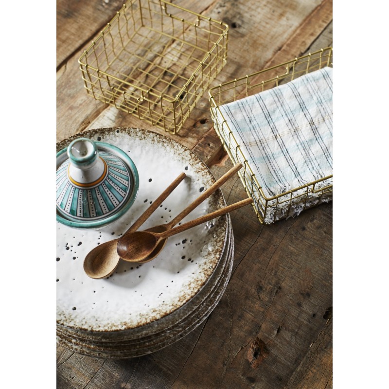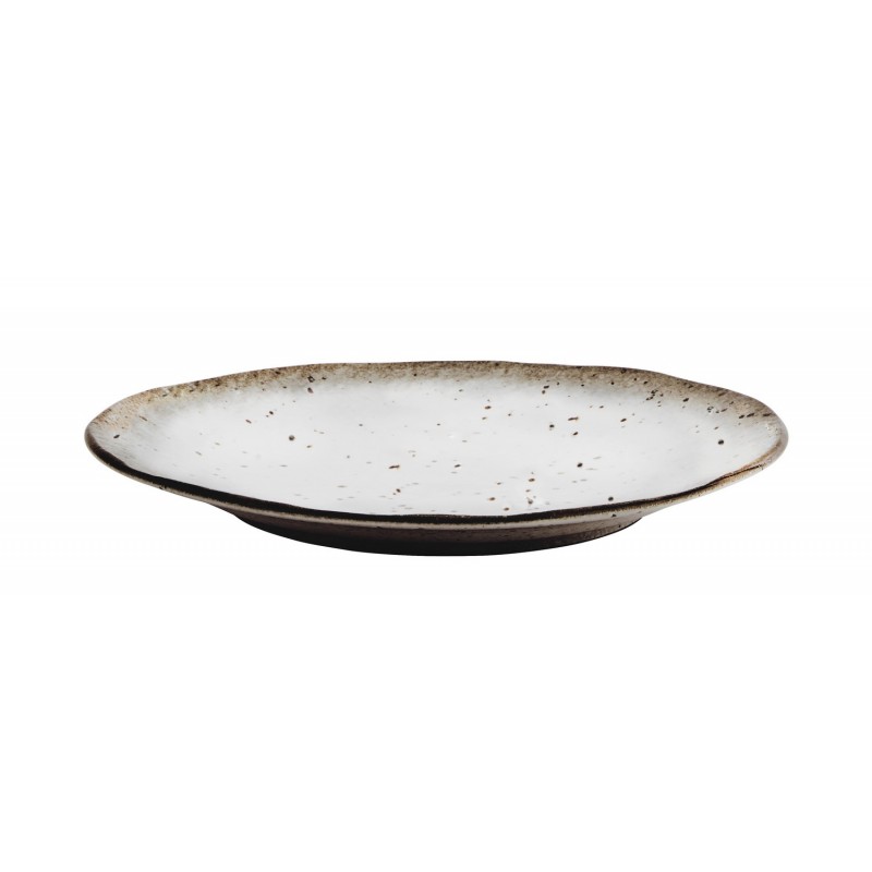 Son grès irrégulier et sa texture unique, subtilement nuancée de blanc écru et de touches de brun sur les bords, ajoutent du charme à votre table, parfaite pour un style campagne.
