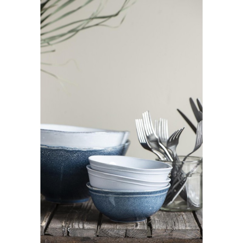 Cette collection de vaisselle en grès émaillé propose des bols à la forme organique et irrégulière, créant ainsi un aspect rustique qui met en valeur l'authenticité de chaque pièce.