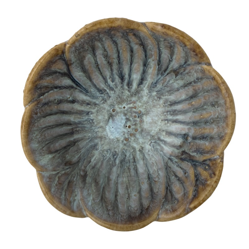 Ce petit bol en grès se distingue par son motif floral délicat et sa nuance apaisante de vert olive, sublimée par un émail réactif.