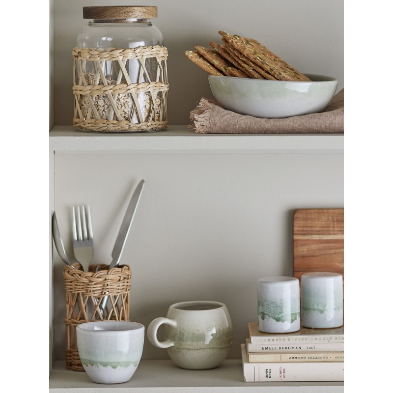 Le Bol Paula de Bloomingville est en grès et ajoute une touche de couleur à la table. Le bol est émaillé avec un effet dip-dye vert clair qui contraste magnifiquement avec la teinte claire. Utilisez-le pour servir des collations et des petits-déjeuners, ou comme élément décoratif. La nature de l'émail peut entraîner des variations de couleur, rendant chaque bol unique.