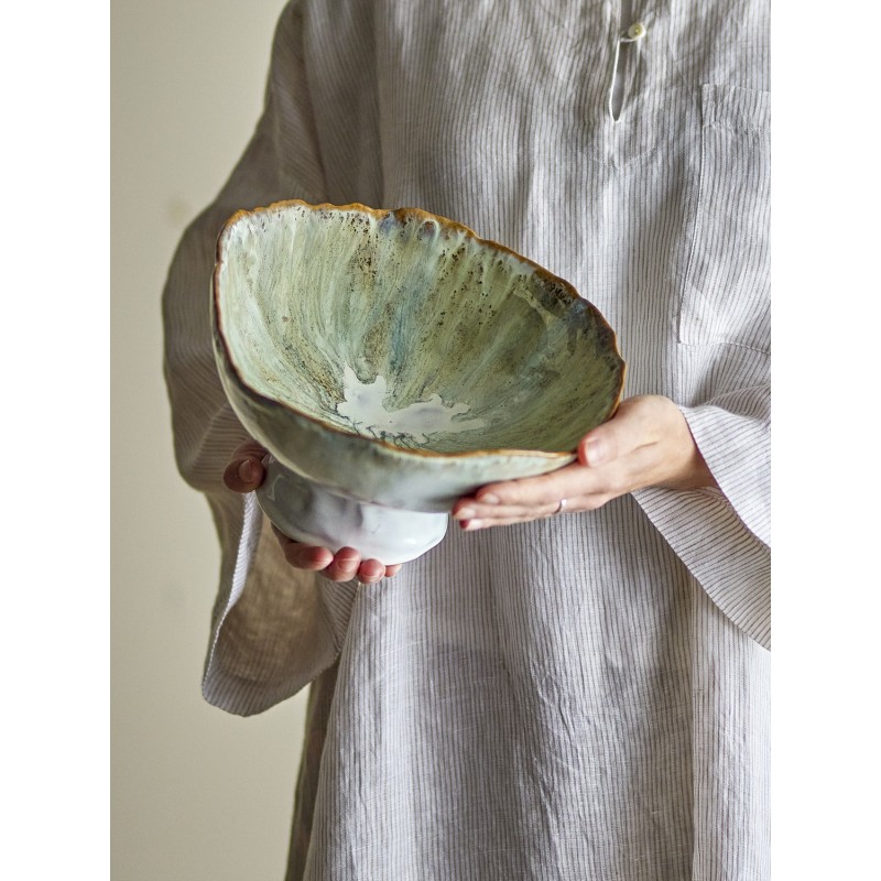 Conçu en grès et sublimé par un émail réactif dans des tons apaisants de bleu et de vert dooux, ce bol se distingue par sa palette de couleurs sobres et son design épuré, typique du style nordique.
