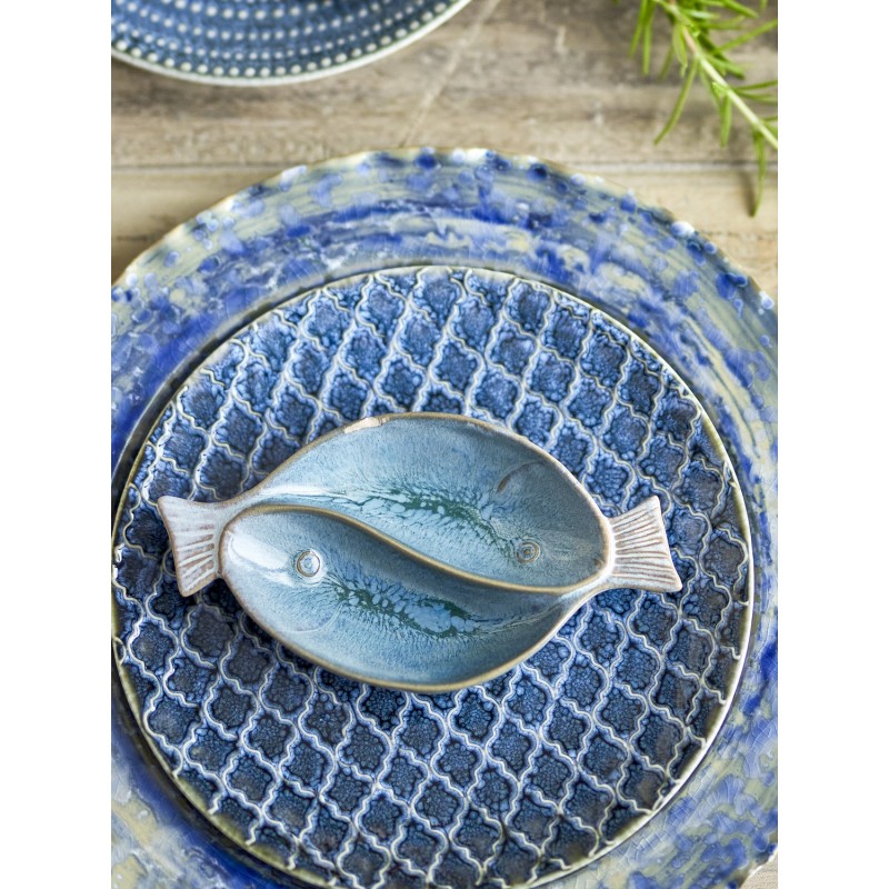 Apportez une touche de fraîcheur marine à votre table avec le bol Mei de Bloomingville. Ce bol en grès émaillé présente une forme originale de poissons dans un joli motif bleu