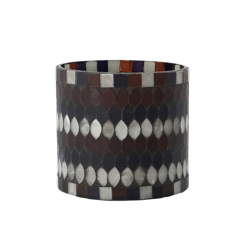 Réalisé à la main, il marie avec subtilité les teintes brun, noir et blanc, formant une mosaïque fine et raffinée qui capte la lumière pour mieux la diffuser.