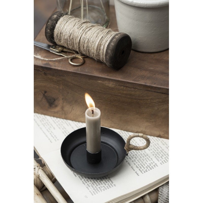 Bougeoir en métal noir avec poignée en bambou – IB Laursen
