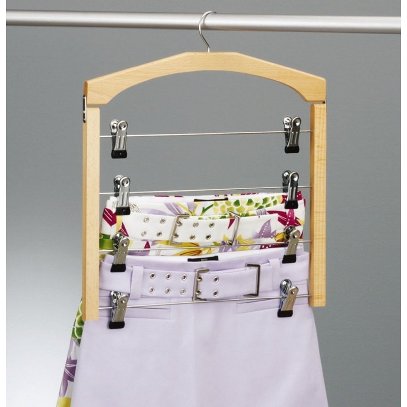 Optimisez votre espace avec ce cintre en bois de hêtre naturel, conçu pour suspendre jusqu’à quatre pantalons ou jupes.