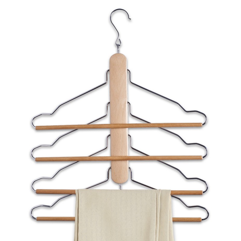 Conçu pour suspendre au minimum quatre pantalons en toute simplicité, il allie bois clair et métal dans un design à la fois épuré et robuste.