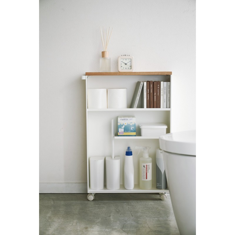Optimisez chaque centimètre de votre espace avec le meuble étroit de rangement WC Tower de Yamazaki.