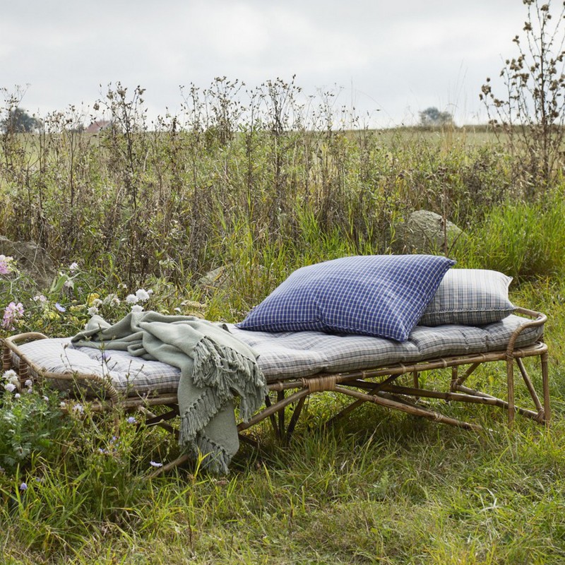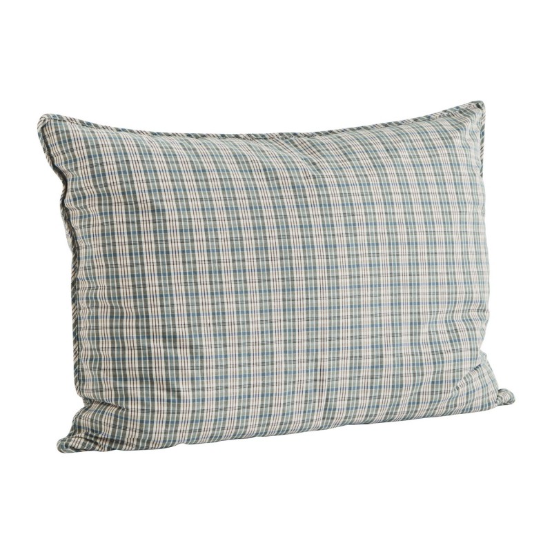Avec son motif à carreaux aux tons bleu et beige, cette housse de coussin affirme un style masculin discret, à la fois charmant et raffiné.