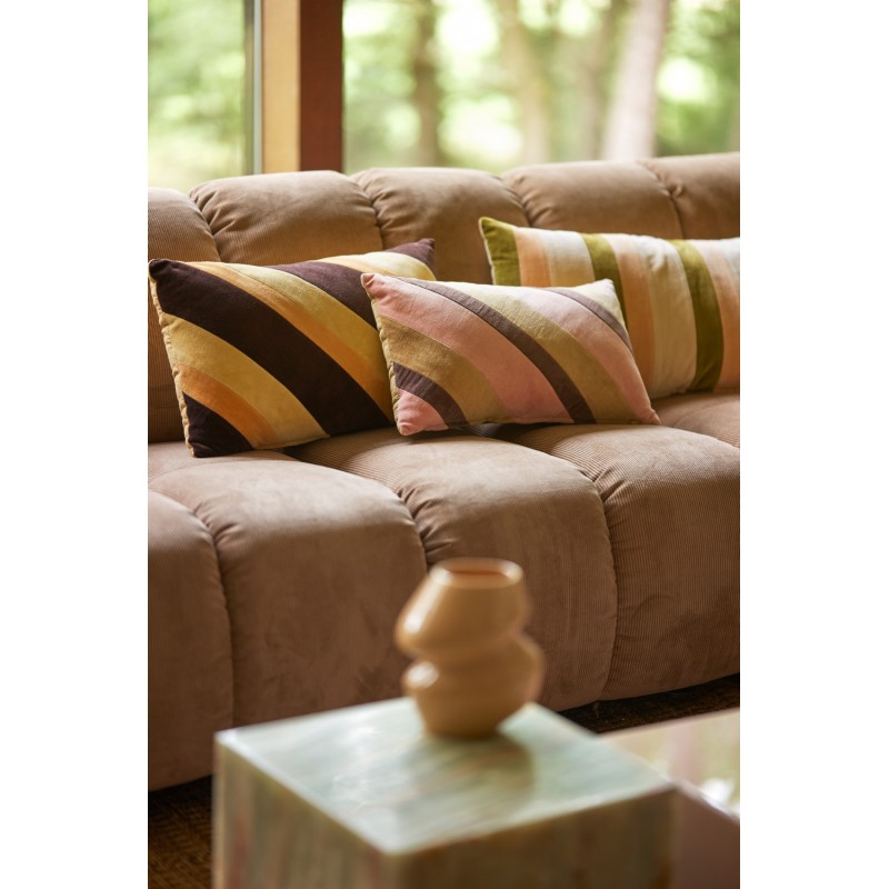 Le coussin en velours rayé HKliving, mêlant un dégradé de couleurs chics de noir, pêche et jaune, fait rayonner votre salon avec audace. Son design unique et ses rayures élégantes apportent une touche de couleur douce et de luxe, créant un contraste saisissant sur votre canapé.