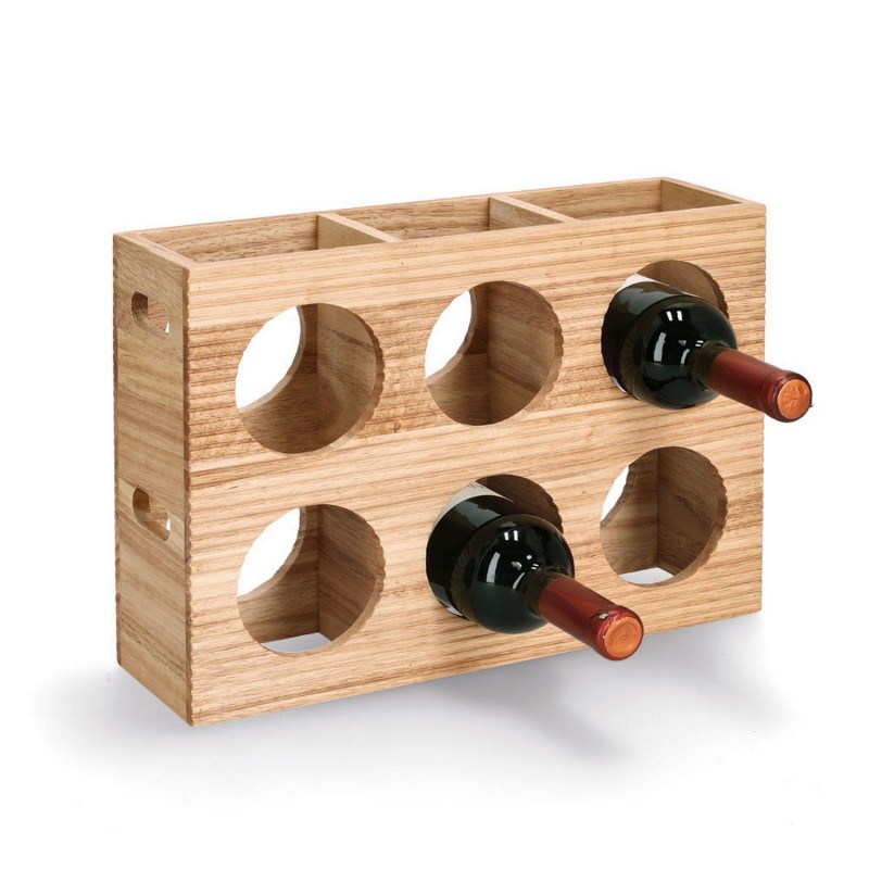 Ce casier à vin en bois naturel Zeller peut accueillir 6 bouteilles et se distingue par l’aspect rainuré de l’hévéa, qui lui confère un caractère unique.
