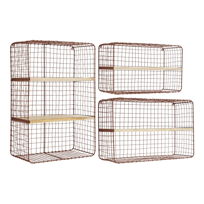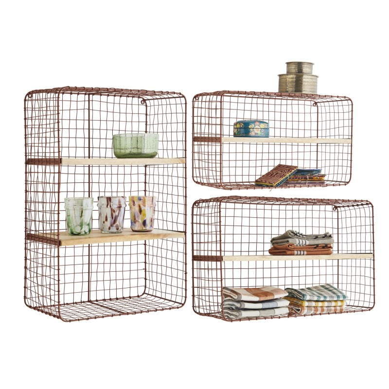 Ajoutez une touche de charme et de nature à votre intérieur avec ce set de 3 étagères murales en métal grillagé et bois de manguier.