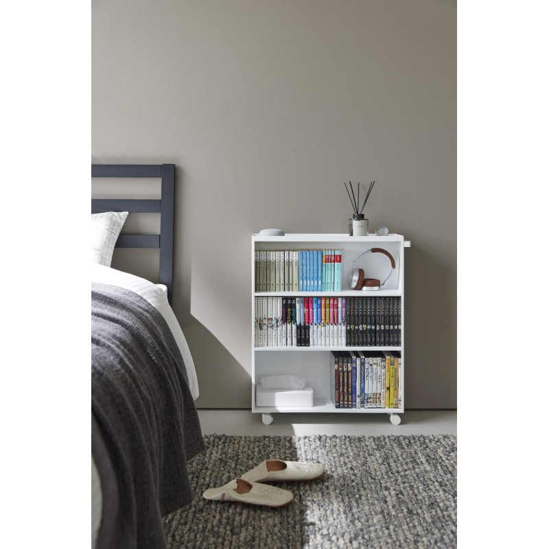 Avec ses trois niveaux de rangement, un côté fermé et trois serre-livres inclus, elle est idéale pour organiser petits livres, mangas ou objets du quotidien.