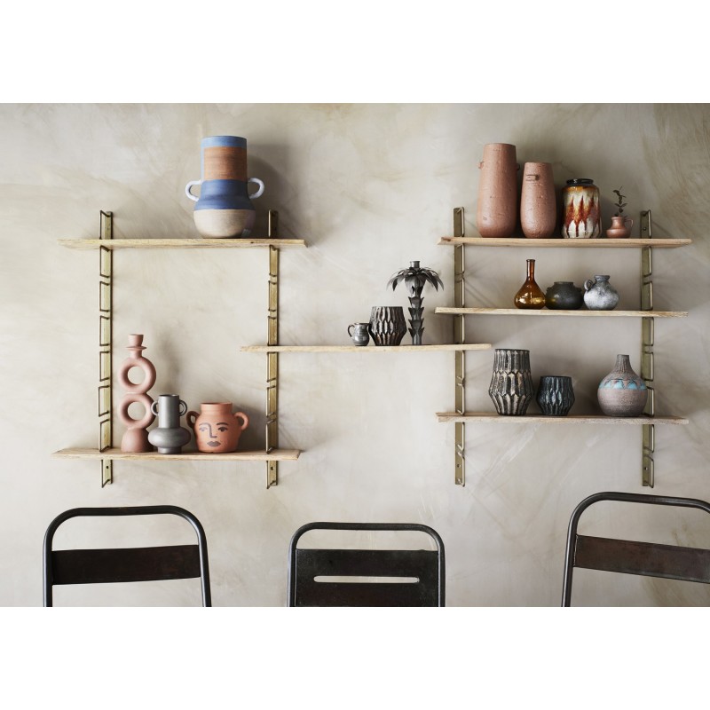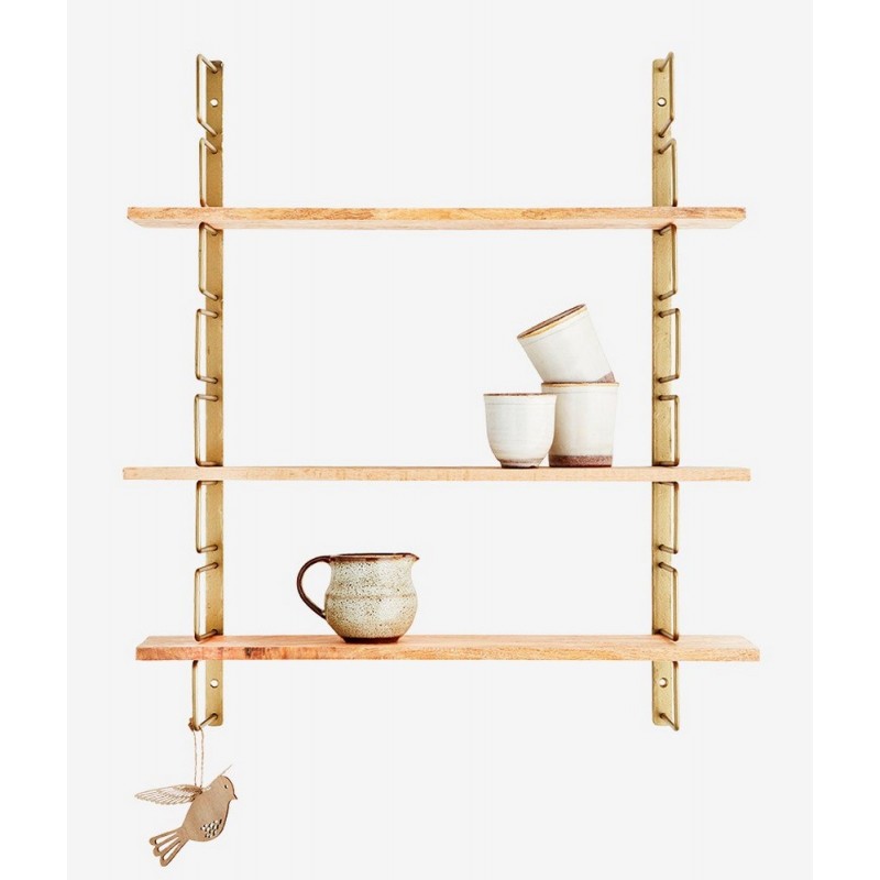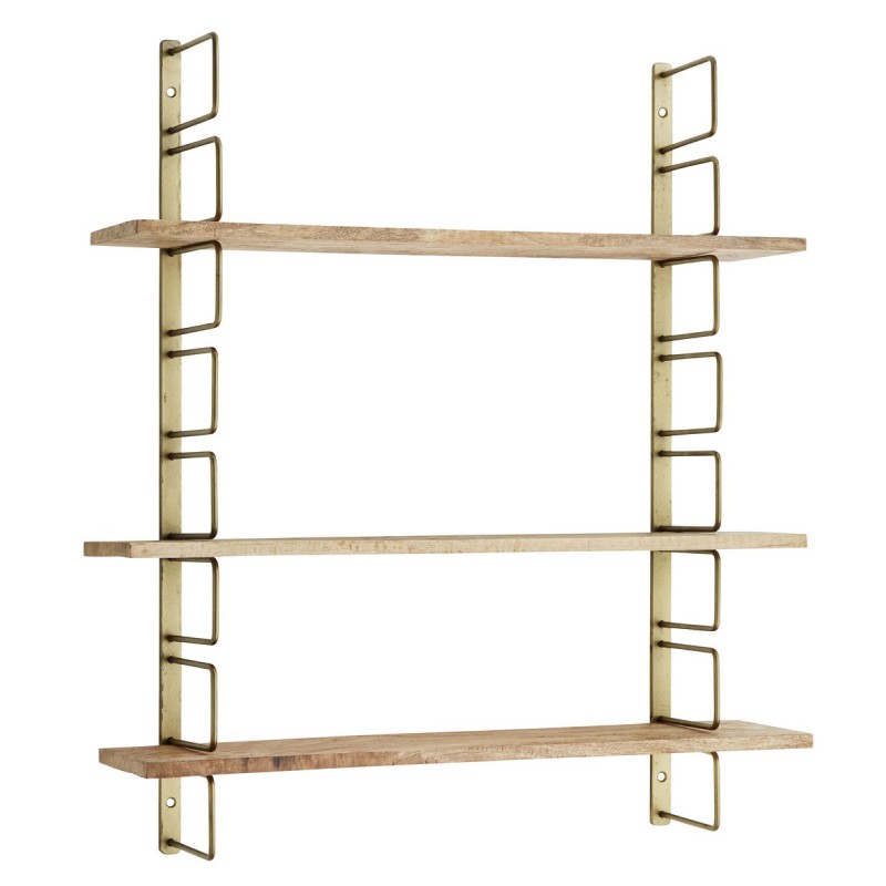 Offrez du caractère et sublimez vos murs avec l’étagère murale en bois de manguier et métal doré vieilli signée Madam Stoltz.