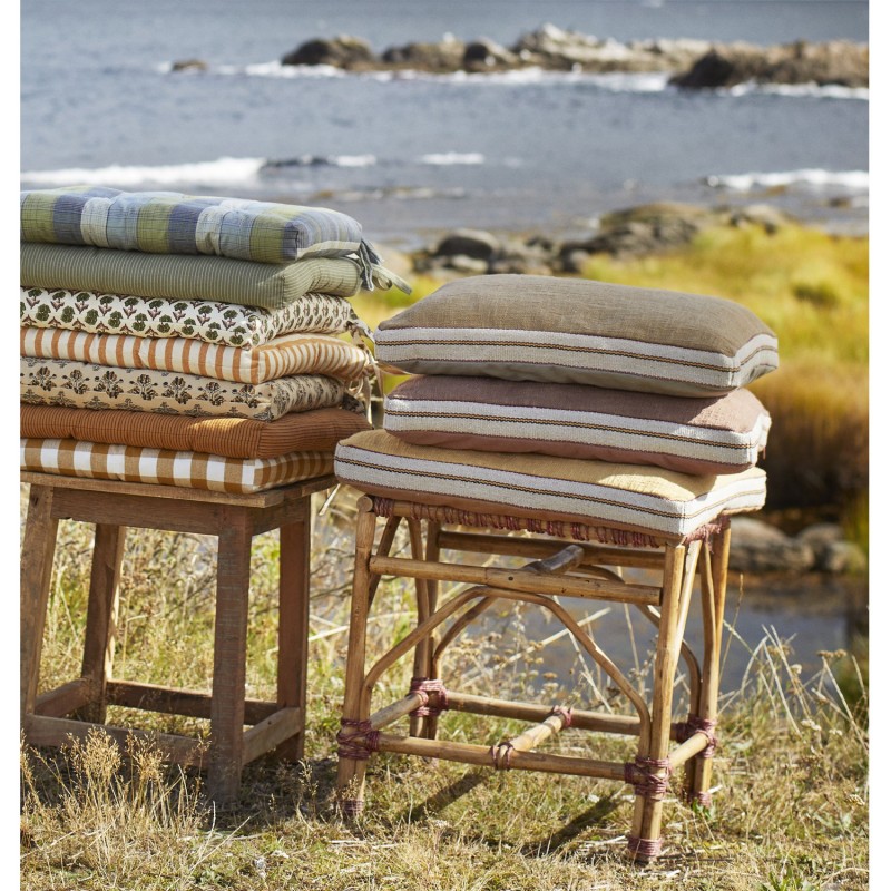 Découvrez notre collection de galettes de chaise en coton uni Madam Stoltz, réversibles et pleines de caractère.