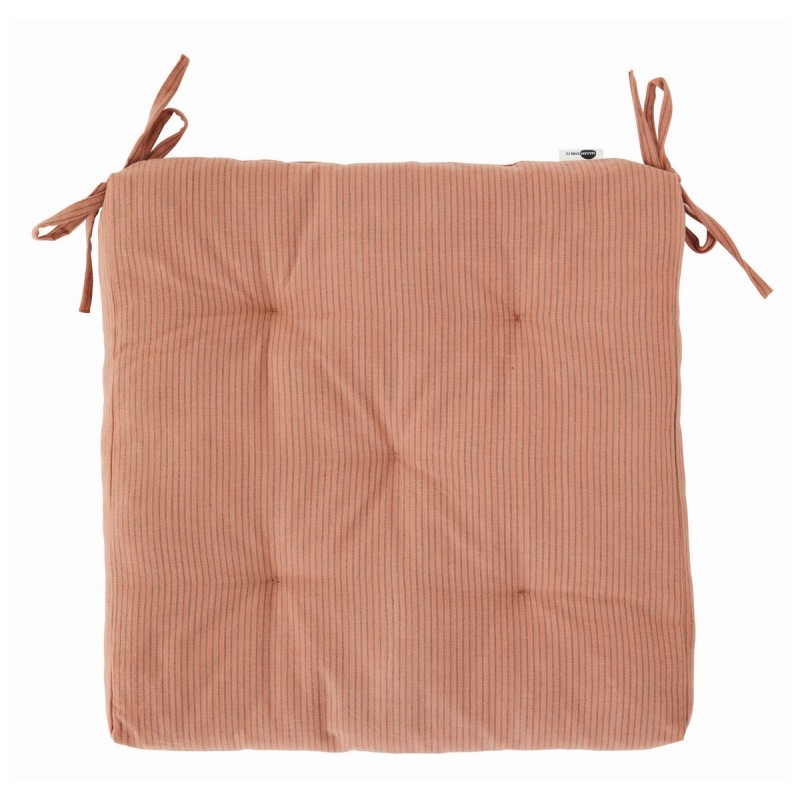 Une collection de confortables galettes de chaise en coton imprimé aux fines rayures qui nous plonge dans une ambiance bohème et chic.