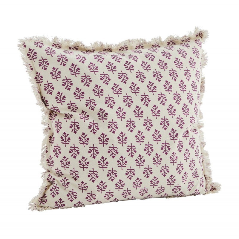 Coton épais imprimé (blanc écru, rose fuchsia)