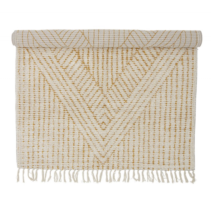 Le tapis Stephi de la Creative Collection est en coton et présente un magnifique ton naturel qui apporte une note chaleureuse à votre décoration intérieure. Le tapis est rectangulaire avec d’incroyables détails jaunes et de petites franges à chaque extrémité. Il vous donnera envie d'être pieds nus toute la journée