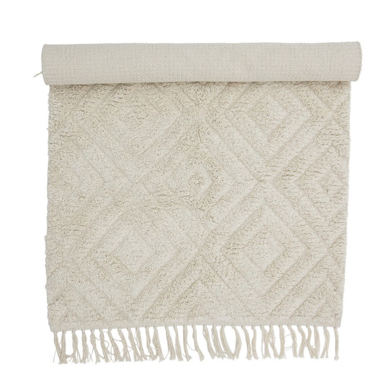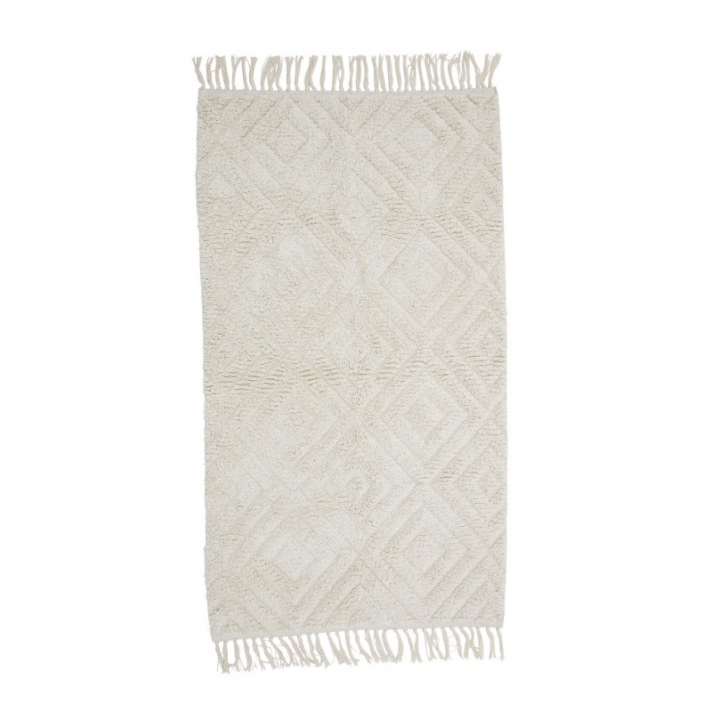 Le tapis Lenna de Bloomingville est 100 % coton et présente un magnifique motif tufté dans un ton naturel, qui apporte une note chaleureuse à votre décoration intérieure. Ce tapis rectangulaire vous donnera envie d'être pieds nus toute la journée ! Parfait devant votre lit ou dans la salle de bains pour une douce sensation de chaleur.
