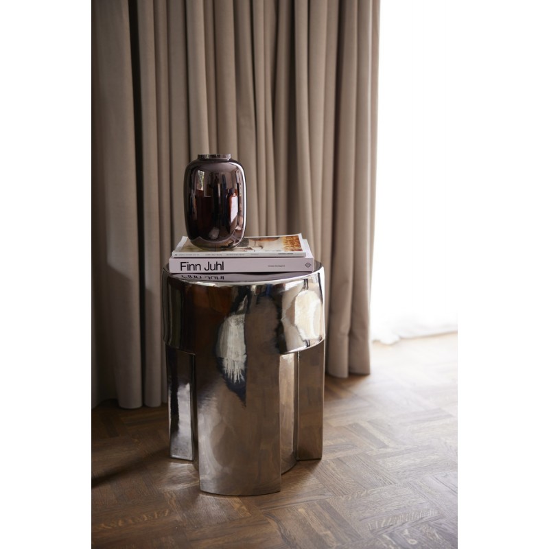 Le matériau chromé combiné à une couleur marron chaud crée une interaction passionnante. L’esthétique abstraite contraste avec un objet fonctionnel, faisant de ce vase en verre une pièce maîtresse unique. Un design qui peut être utilisé pour exposer des fleurs ou comme ornement décoratif seul.