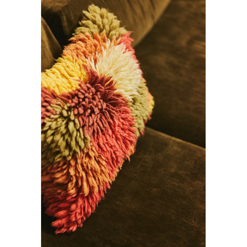 Ce coussin en peluche vous invite à vous laisser séduire par la chaleur luxueuse de sa texture hirsute, son riche mélange de rouges ardents, d'oranges chauds, de jaunes apaisants et de verts terreux créant un accessoire visuellement éblouissant. Accueillez cette célébration du shabby chic dans votre maison!