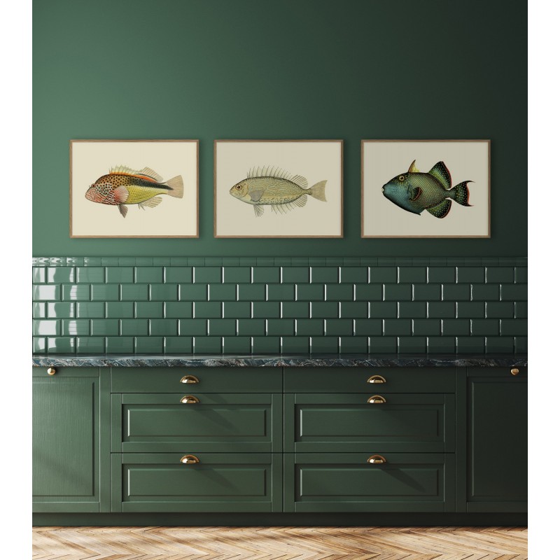 Intégrez la vie sauvage, la simplicité et un brin d'humour à votre décoration intérieure avec ces gravures de poissons The Dybdahl. Pourquoi pas penser à la chambre des enfants, elles apportent non seulement de la couleur, mais aussi un élément éducatif.