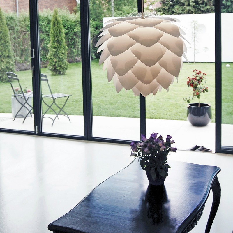 Splendide luminaire suspension design en forme de fleur blanche réalisée en polycarbonate et polypropylène signé William Ravn pour Vita.