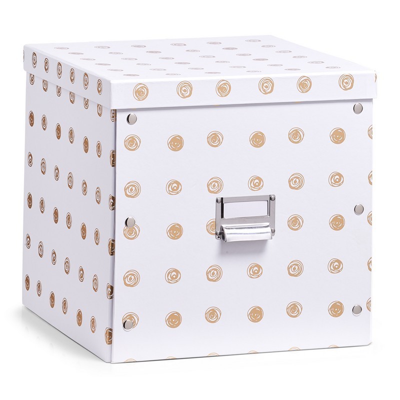 Boîte rangement carton cubique décorative blanche dorée Zeller