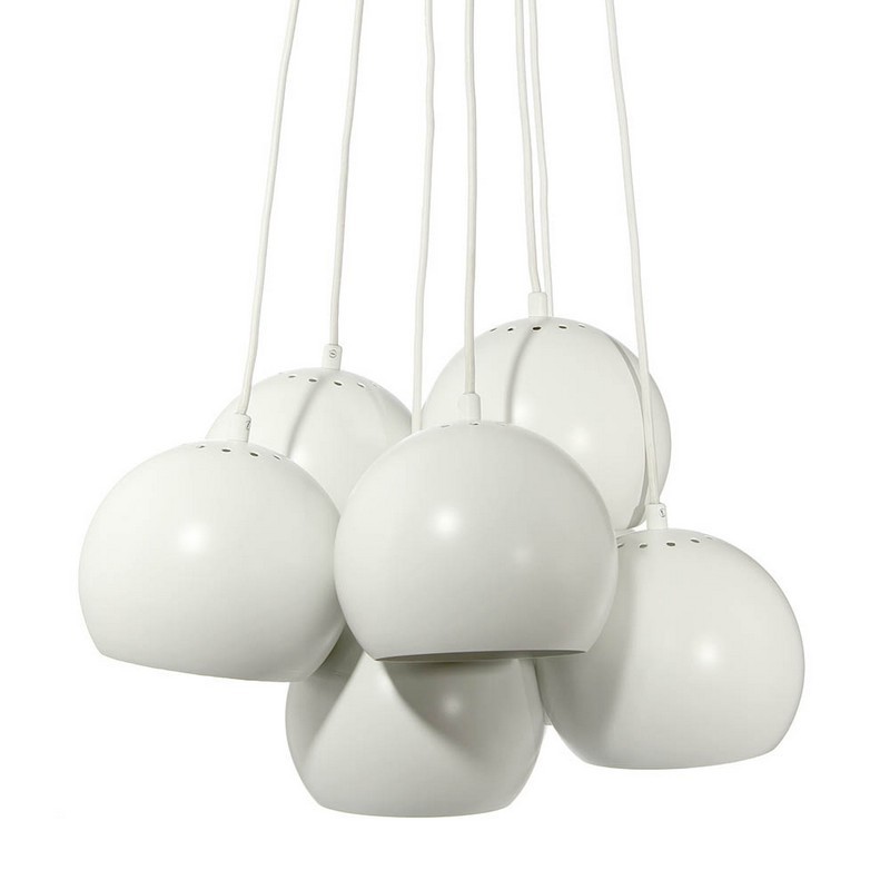 Suspension multiple 7 abat-jours boules blanches métal mat Frandsen Multi Ball