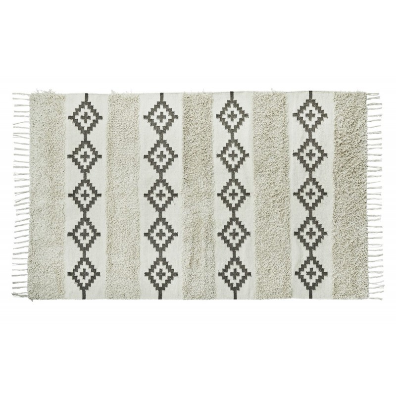 Tapis coton écru gris motif berbère franges Madam Stoltz